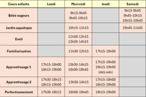 Ouverture du bassin aménagé sur un créneau de 1h15 (selon les envies de l’enfant).