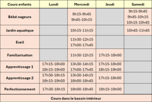 Tous les cours proposés pour les enfants s’effectuent dans le bassin intérieur.